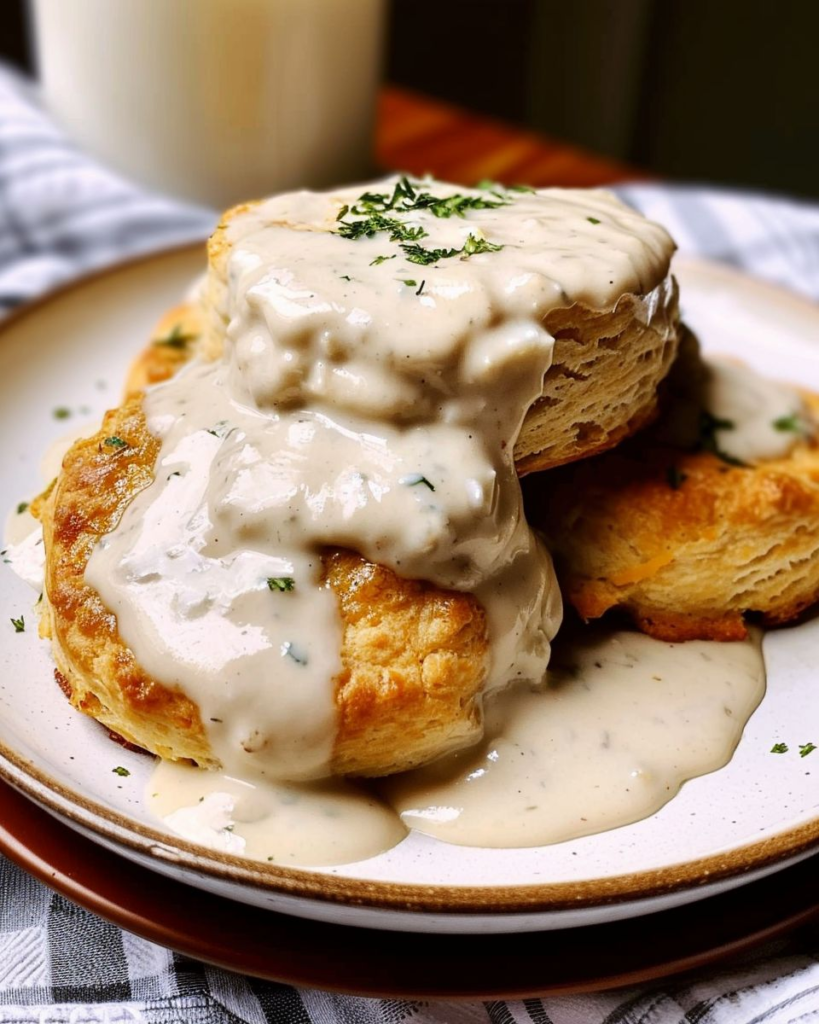 Sometimes, all a recipe needs is some bacon. Unless we’re talking trendy food, like bacon doughnuts, it’s almost always a welcome addition to a meal … especially a breakfast! And this biscuit and gravy breakfast has double the bacon: bacon in the biscuits and bacon in the gravy!
